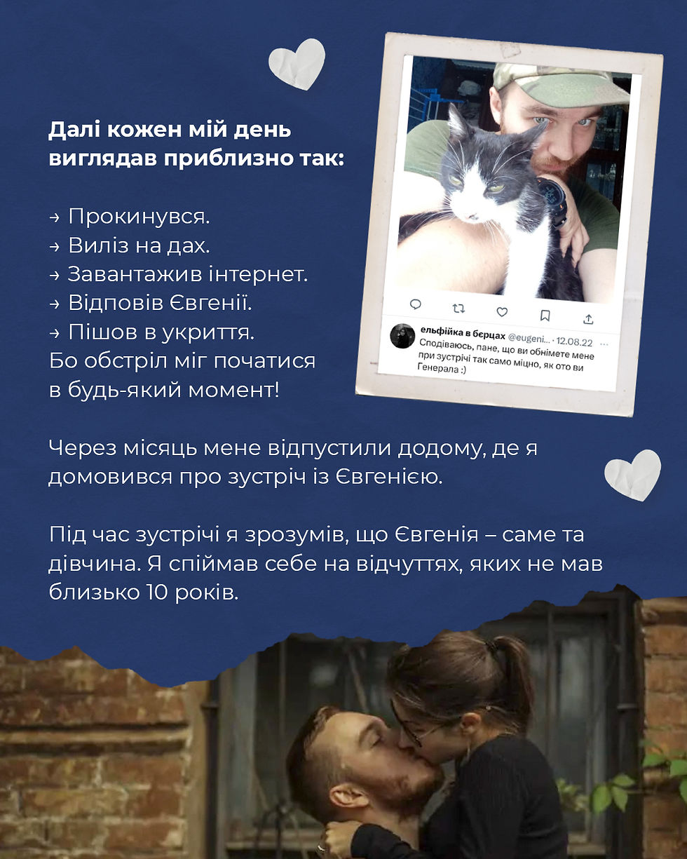 A month later, I was allowed to go home, where I arranged to meet with Yevhenia. During the meeting, I realised that she is exactly that girl and we started dating.